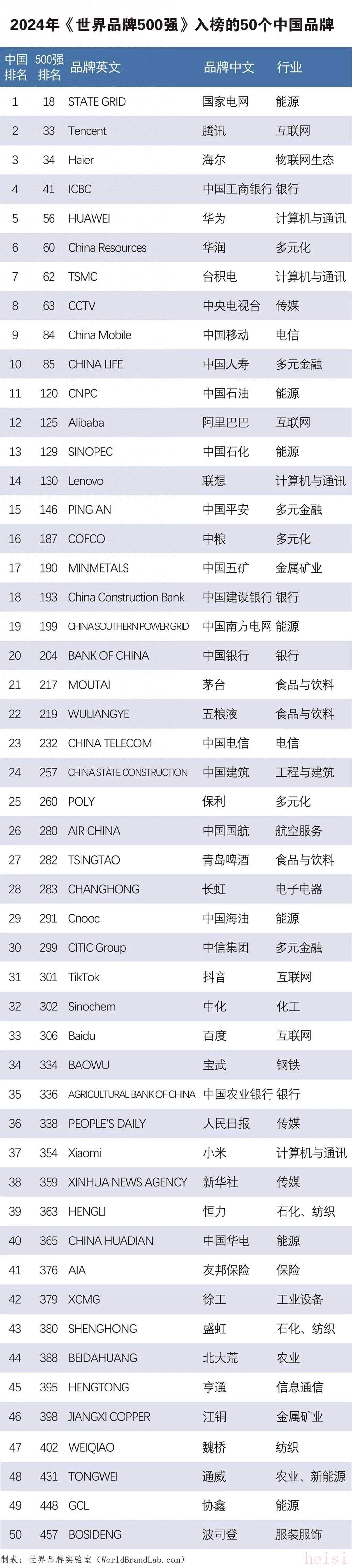需要注意的是,世界品牌500强榜单每年都会更新,请关注相关新闻获取最新信息。