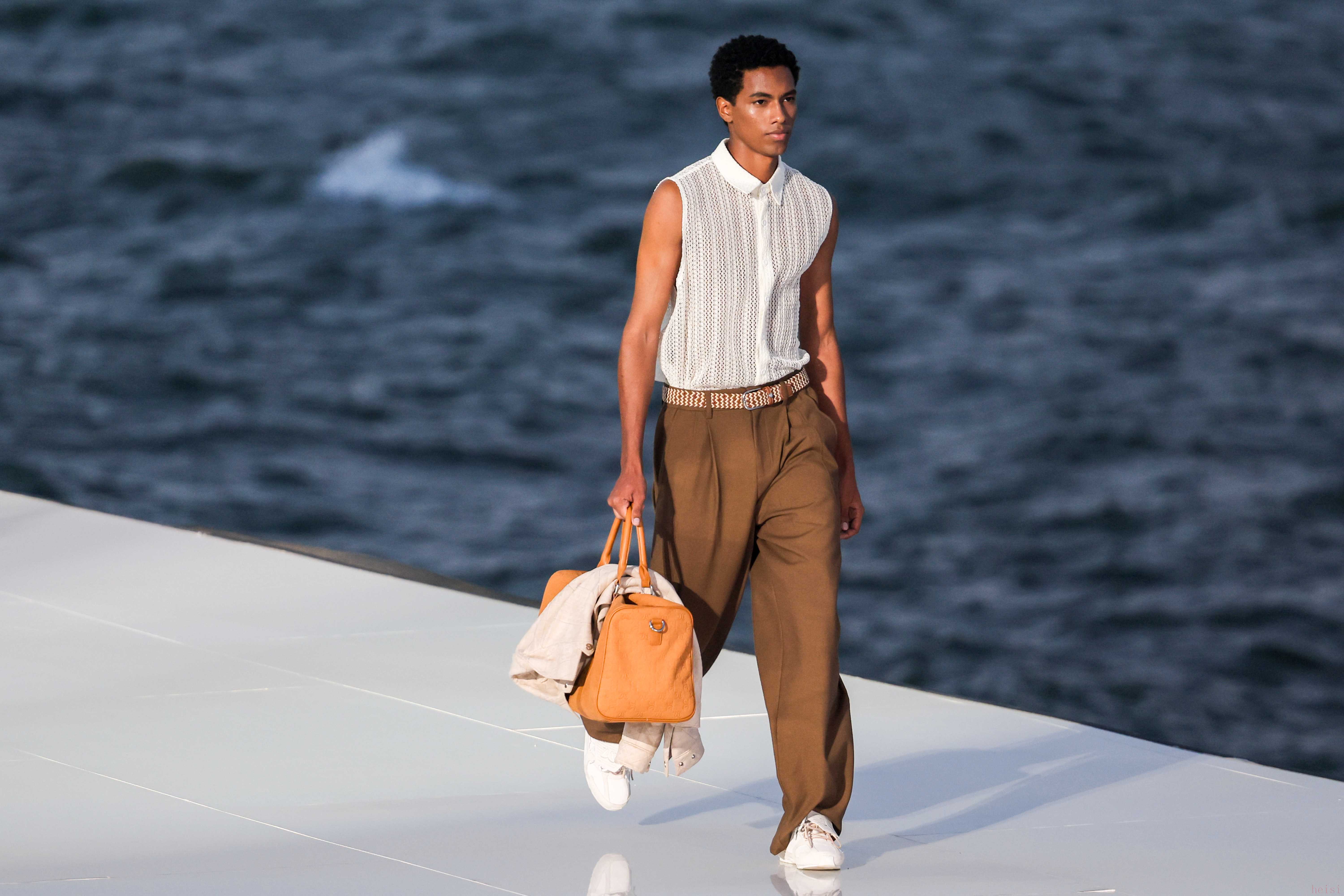 150米的T台一直延伸到大海的中间,模特自大海上走来,服装线条如同海浪的律动,色调与海洋呼应,岸边的红砖古厝,灯塔山上遥望的当地渔人,则让舞台在潮流与传统之间找到平衡。