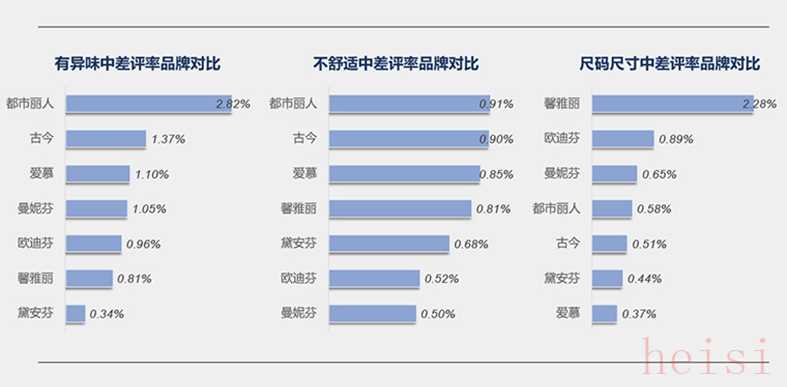 都市丽人则主要在异味和不舒适感方面收到了较多差评。这可能指向产品在卫生标准、透气性、排汗性或者与皮肤的接触敏感度等方面存在问题。对于内衣这类贴身衣物,舒适度和卫生是非常重要的,因此这些问题可能会显著影响消费者的使用体验。