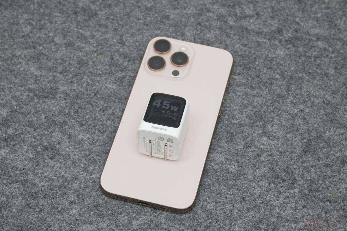 航嘉灵动 F45 Neo 安全快充与手机对比显得小巧精致,且风格百搭。