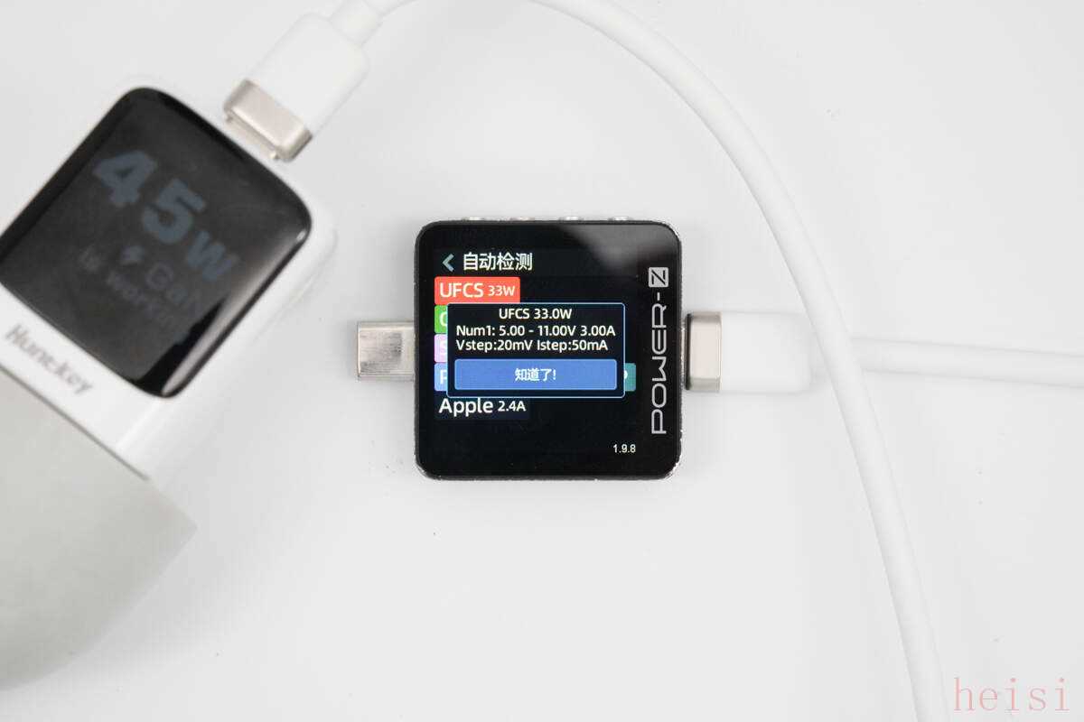 UFCS报文方面,支持5-11V 3A档位电压,步进电压为20mV,步进电流为50mA。