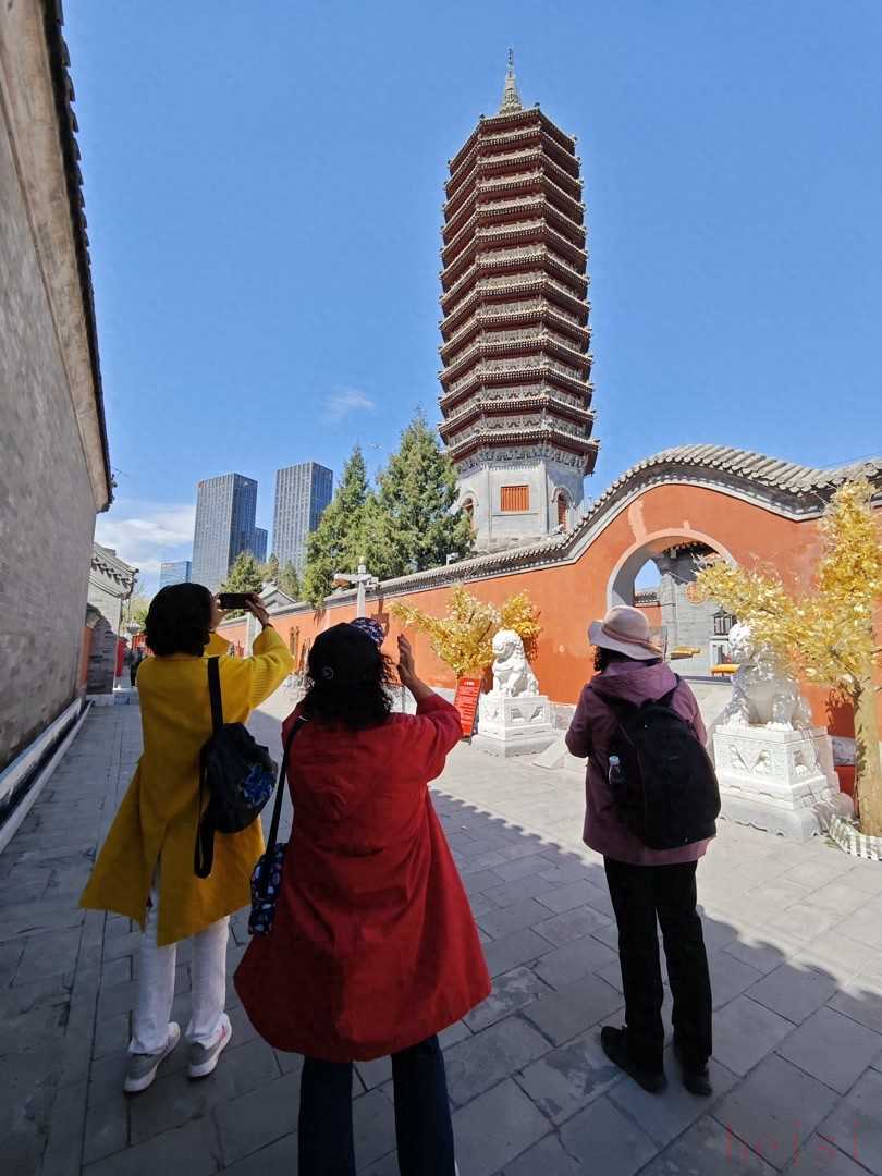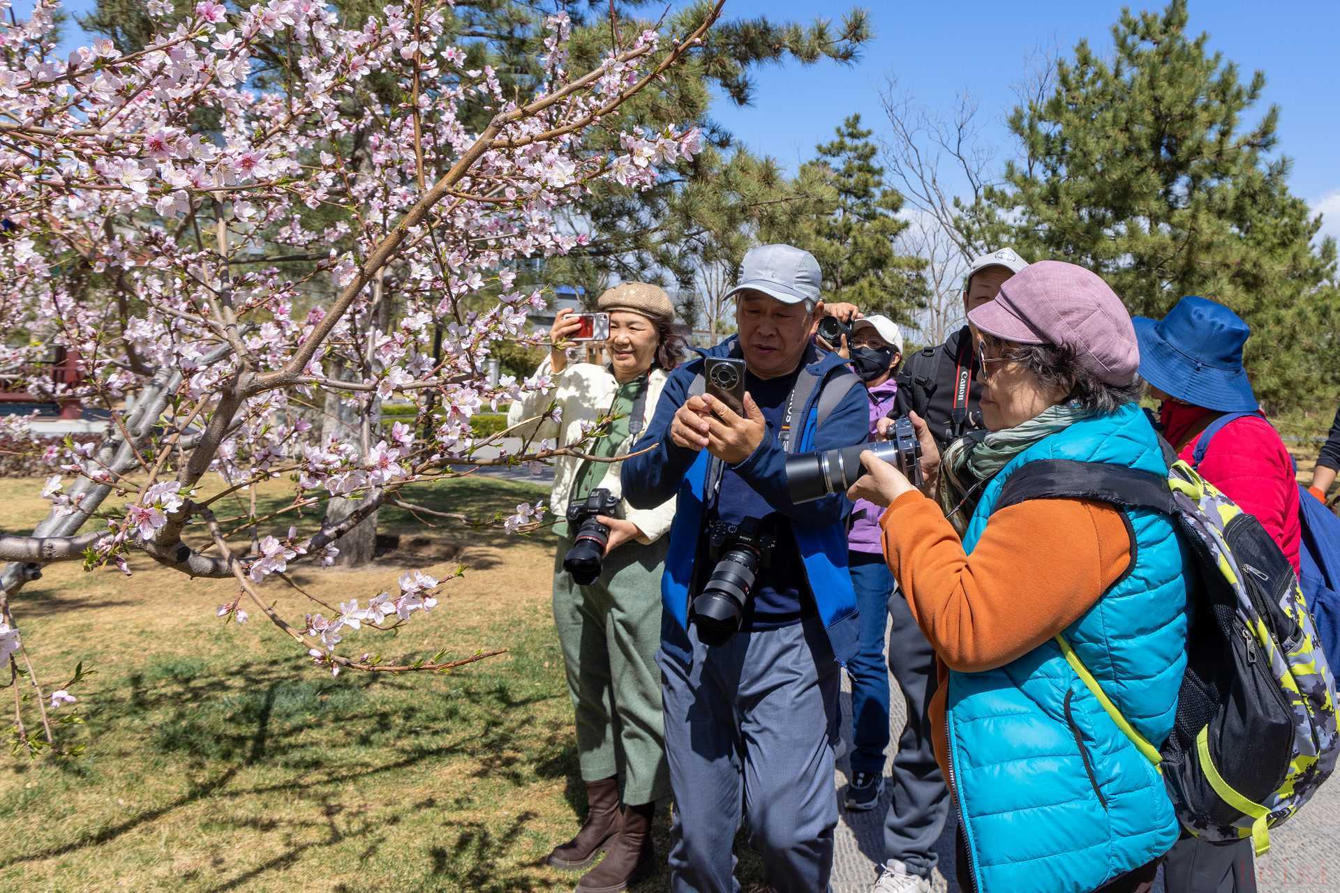 燃灯塔下,碧桃花花开正盛,迎着春日暖阳,层层叠叠的花影与嫩叶交织,勾勒出别致春色。活动中,摄影师们纷纷用镜头寻找春日最美角度,记录城市副中心春天独特的韵味。