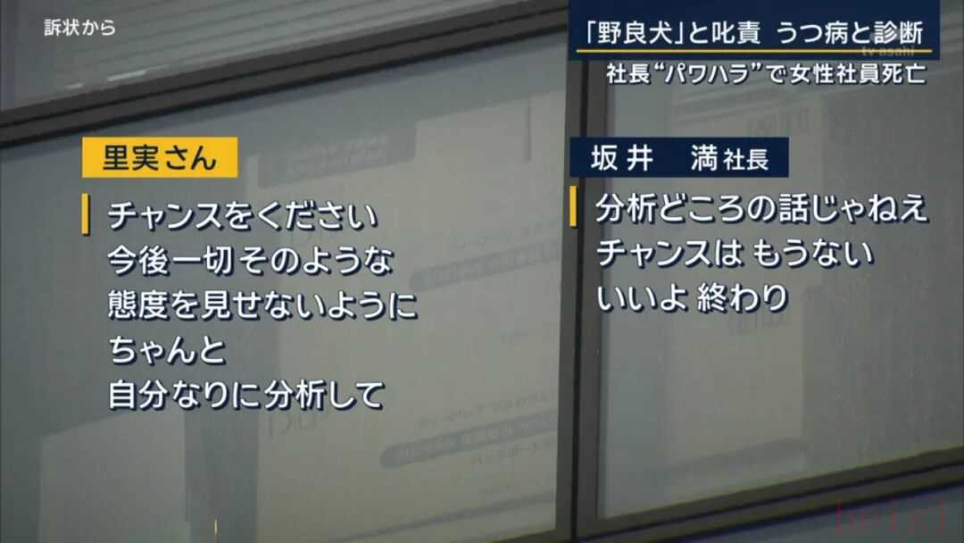 2023年5月,日本劳动基准监督署认定,社长坂井满的言行已经构成了职场霸凌,并且与里实的抑郁症发病及其死亡存在因果关系,判定该事件为工伤!