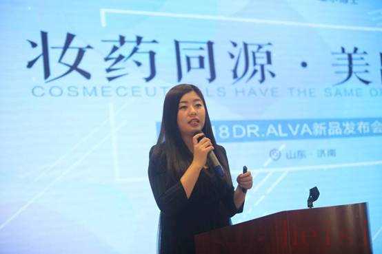 山东福瑞达生物工程有限公司美业产品经理董恬恬分享了Dr.Alva玻尿酸深度安瓶保湿精华液、透明质酸精研保湿霜、透明质酸精研保湿营养液等明星产品的诞生历程,以及未来的整个产品线的规划。她说,“Dr.Alva目前规划两条产品线,一是精准修护系列,精准解决问题肌肤;一是保养修护系列,解决日常基础保养”,Dr.Alva将开创“科学护肤”的新方式,致力于通过精准修护理念,打造科学护肤派。同时,秉承“妆药同源,美出名门,以源补源,精准修护”的理念,将“精准修护”这一概念渗透到各个产品。