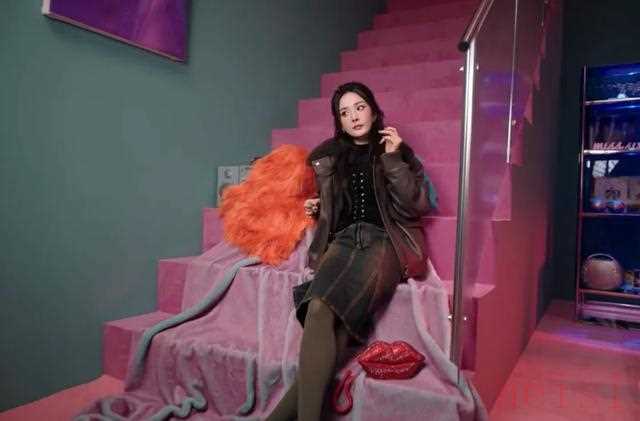 "杨幂穿豹纹高跟鞋坐地上":这个造型本身就很有张力,豹纹的野性感和高跟鞋的优雅感结合,坐在地上又增添了一丝随性或慵懒。