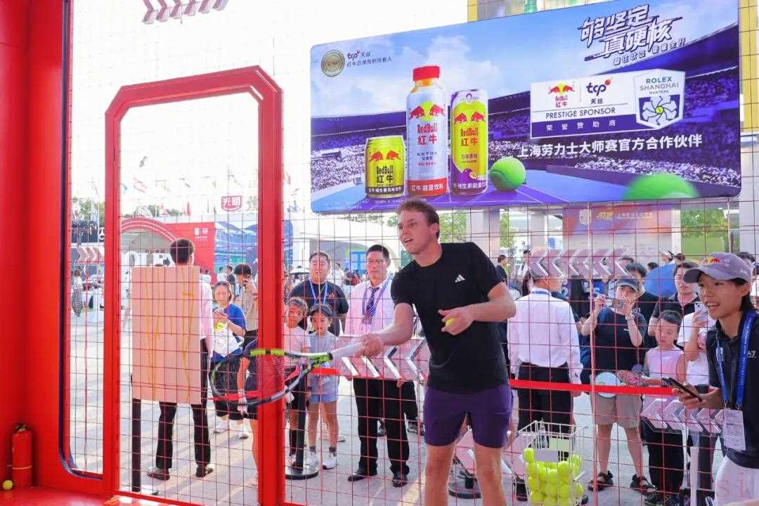 而在具体的互动设计中,红牛采用线上线下联动狂欢的模式,带来了清晰的层级化体验。第一层是低门槛的广泛触达,通过“红牛网球线上挑战赛”及“红牛网球线下挑战赛”吸引广大爱好者报名,让他们轻松体验网球乐趣。第二层是高价值的专业体验,线上线下挑战赛中的优胜者还能获得与大师赛球员训练伙伴团队同场交流的宝贵机会,网球明星亚历克斯-米克尔森(Alex Michelsen)也空降红牛展台与粉丝亲密互动。所以在比赛观众眼里,红牛打造的不仅是一场活动,更像是一个为网球爱好者搭建的体验平台。