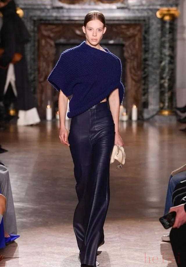 要说新穿法,伦敦时装学院的三明治叠穿有点反人类:先薄纱打底,再加绞花,再来条皮质腰封。