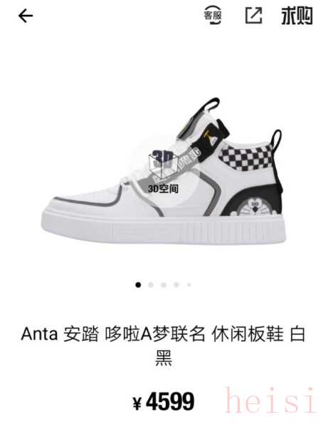 在安踏品牌中,以哆啦A梦联名休闲板鞋白黑款为例,42.5码售价为4599元,发售参考价仅为499元,涨了8倍多,最近购买记录有近9000条。