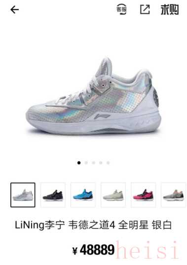 中证君在得物APP上搜索发现,以李宁韦德之道4全明星银白款为例,页面显示仅有42码,付款后7天内到货,售价竟高达48889元。而该鞋参考发售价仅1499元,涨幅达31倍!但页面上却并无最近购买记录,似乎是“有价无市”。