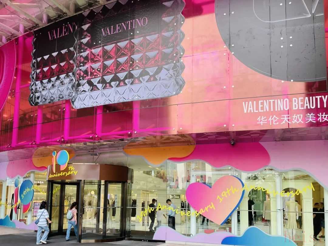 1F美妆区域迎来华伦天奴全新亮相以及娇韵诗重装开幕。