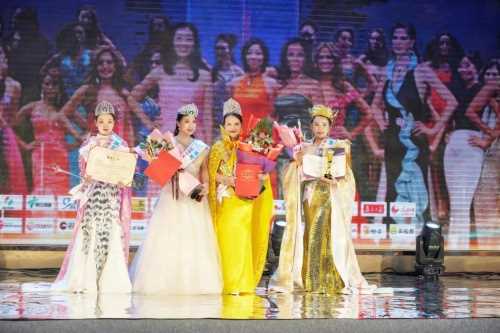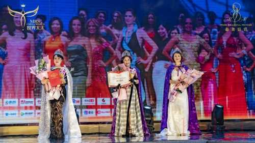 (从左至右),广东冠军叶淑霞、深圳冠军李亭媛、李岱妮主席、湖南冠军熊婉言评选出14位形象代言人,分别是:尹靓、罗海蛙、邓群娟、叶淑霞、于静、熊婉言、谢水秀、赵燕、王芝惠、刘翠翠、朱莉、韩丹、王依霖、李君倩。荣获世界太太大赛单项奖荣誉:①礼仪大使奖:卢焕群②最具魅力奖:于静③最佳台风奖:号冯燕琼④最美微笑奖:王莲英⑤最佳形体仪态奖:李亭媛⑥最佳上镜奖:陈春先⑦最佳魅力奖:号叶淑霞⑧最佳气质奖:翟晓妃⑨最美家风奖:罗海蛙⑩慈善大使奖:王思敏评选出12位美丽天使奖 :洪南春 、郭金涛、黄桂明、顾大雁、华晓莲、杨毅、张静、林晓阳、邓群娟、谢水秀、赵燕、王芝惠 。另外,本赛事还通过网络投票,选出人气最高的前三名,分别是:人气冠军罗海蛙人气亚军翟晓妃、韩丹人气季军王依霖世界太太大赛总冠军罗海蛙还与唐影集团股份有限公司张智焜先生签约,有机会进军影视圈。