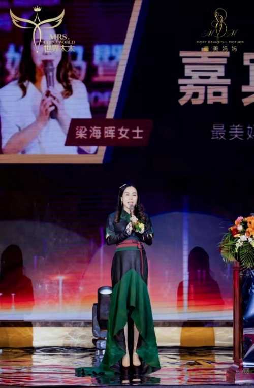 最美妈妈暨星模大赛由梁海晖女士于2018年在广东佛山创立,传播爱与美,倡导形象美、心灵美、家庭和谐、个人成长,注重社会形象,活动融入慈善公益等理念,目前已举办四届,已成为国内较具社会知名度与美誉度的美丽赛事,一大批妈妈和少儿经过赛事历练,自身获得完美蜕变和快乐成长。2021年,该赛事得到广东省模特行业协会、佛山市南海区禁毒协会的大力支持,并作为指导单位共襄盛举。梁海晖女士致辞时表示,最美妈妈一直秉承着关爱家庭、和谐社会、齐家爱国、助力女性发展的使命,通过大赛的举办,明确好女人的标准,树立女性的榜样,通过参赛和学习,帮助打造内外兼修以及具有爱心和责任感的女性。我们与世界太太携手同行,全力打造和谐共融的文化赛事。接下来我们依然携手李岱妮主席,带着我们所有的太太、妈妈、宝贝们走向美好未来。