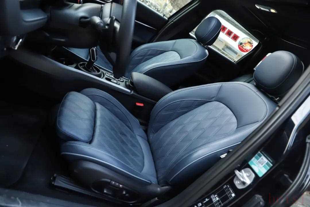 不过综合元素加在一起会让我觉得自己置身于50年代的方程式赛车中,那种感觉很有意思。不仅如此,浓烈的英国味道还会弥漫在蓝色菱形座椅、赛车旗装饰上,要知道在不断吹嘘的Alcantara面料面前,这样一套皮革显得非常珍贵。