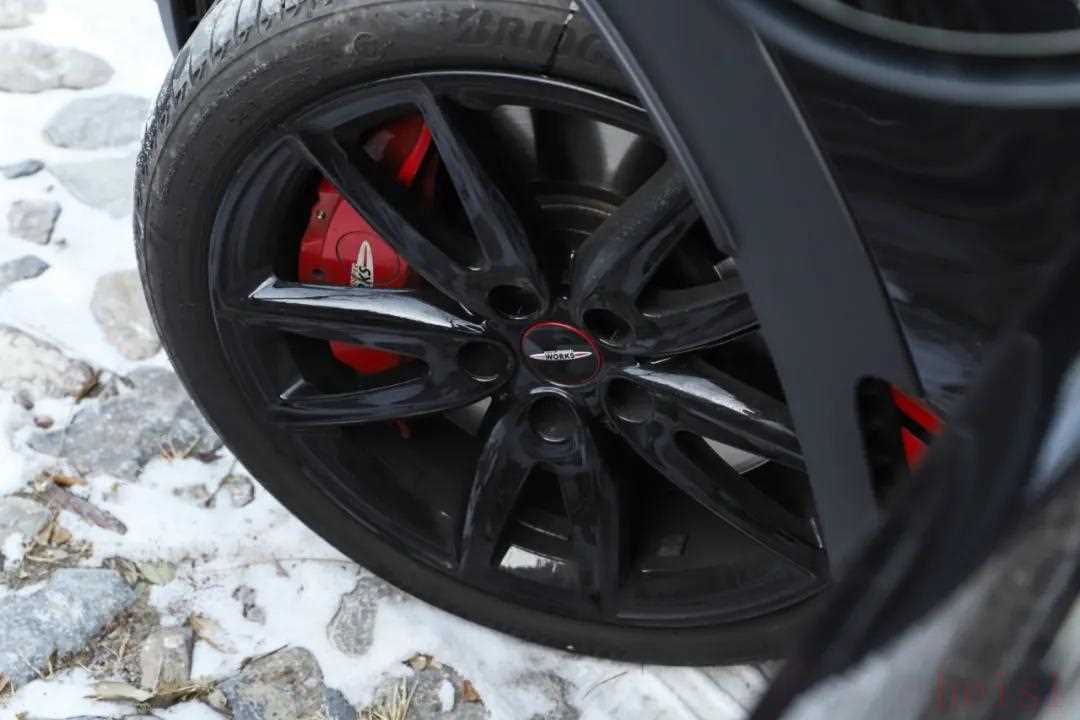 除了这些简单的装饰,区分一台Cooper S和JCW还有很多方法,比如JCW为了提升散热、冷却效果,在前包围将雾灯替换成了通风孔和散热水箱;前唇、侧裙的尺寸更大,更有利于空气动力学;只是225/40 R18规格的轮胎不符合性能车标准,不过这让轮胎在弯道多了很多滑动的迹象,太有趣了。