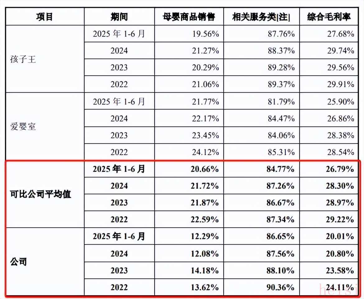 对此,孕婴世界解释称,报告期内,公司的综合毛利率低于同行业可比公司综合毛利率,主要来自于母婴商品销售业务的差异。公司的母婴商品销售业务毛利率低于同行业可比公司,主要受双方经营模式及所处产业链位置不同影响。