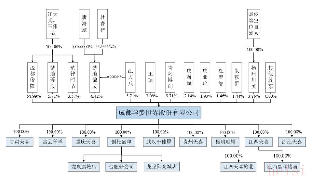 股权方面,江大兵、王伟鉴通过江大兵直接持有的公司股份、实际控制的成都俊隆、韵律时节、楚地蓉成、楚地锦成及其一致行动人王琼直接持有的公司股份,合计控制公司83.4929%的表决权。