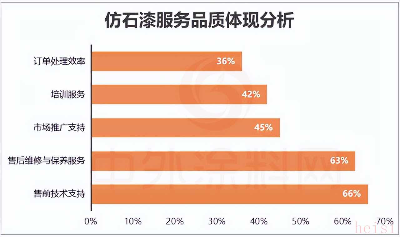 除了产品质量外,服务品质也是消费者在选择仿石漆品牌时的重要考量因素。根据调查结果显示,受访者认为仿石漆品牌服务品质主要体现在售前技术支持、售中订单处理效率、售后维修与保养服务、培训服务、客户投诉处理机制、市场推广支持等方面。