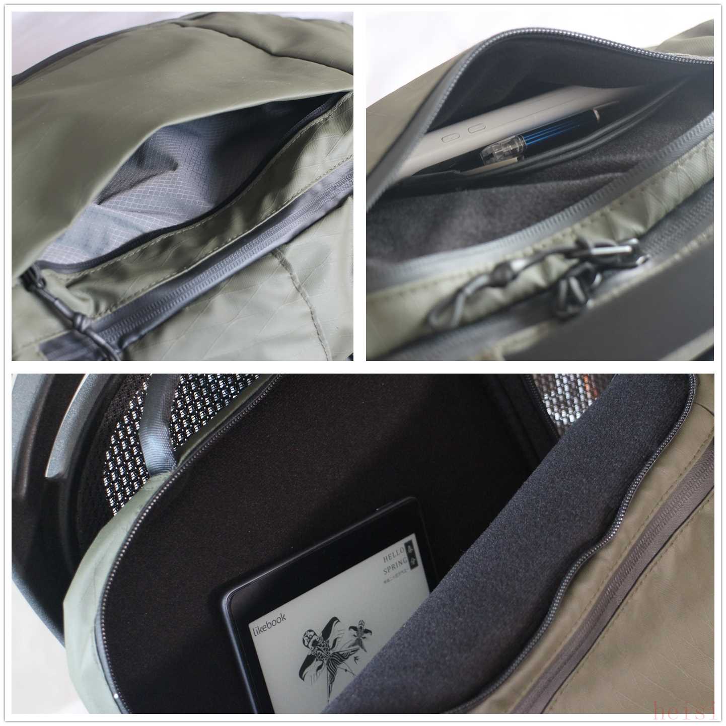 除了生活仓,轻旅行双肩包对于其他功能区的划分也非常合理,并且专门搭配了不同的材质。