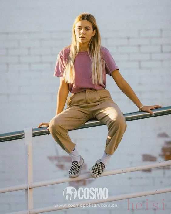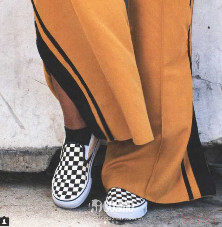相对于纯色款来说花纹款比较适合年轻一些的人群,街头气息满满。黑白格纹的“一脚蹬”是COCO的心头爱,简单的look遇上它就能很出彩了。