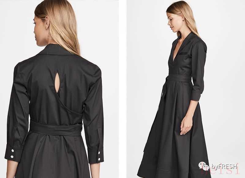 2)纯色简约的衬衫裙也可以结合礼服裙的版型,变奏出不同的风格,下面这条长裙折完4434元,不仅可以上班穿,也适合穿去晚宴。