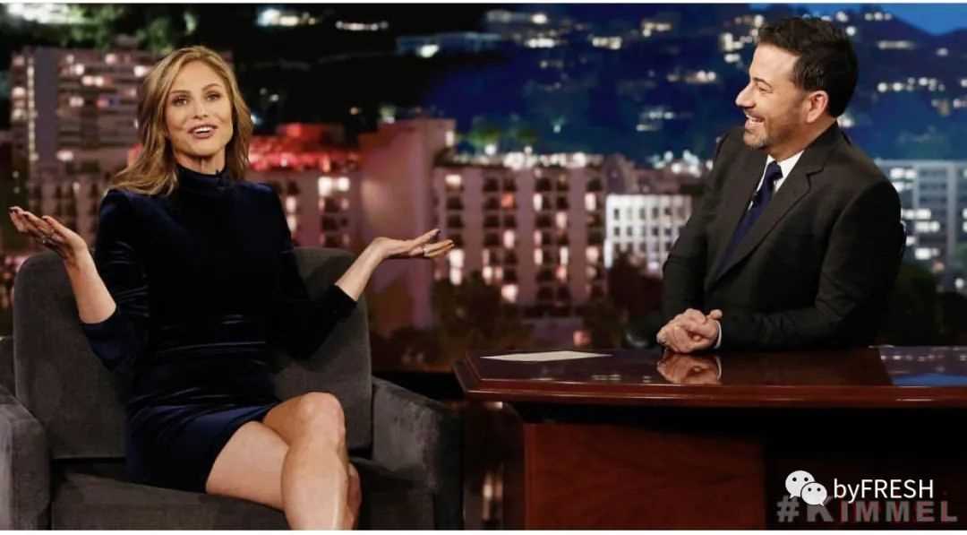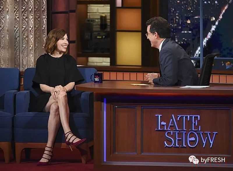 △好莱坞明星Andrea Savage做客”鸡毛秀“时穿着Black Halo的丝绒连衣裙