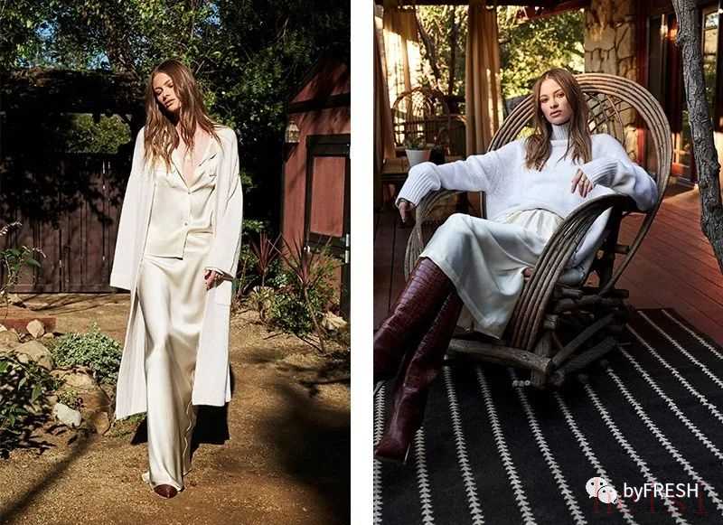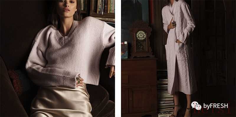 所以Sablyn只主打两种轻量感面料的单品:极度柔软的开司米羊绒和缎面丝绸。偶有一些柔软皮革的打底单品搭配点缀。