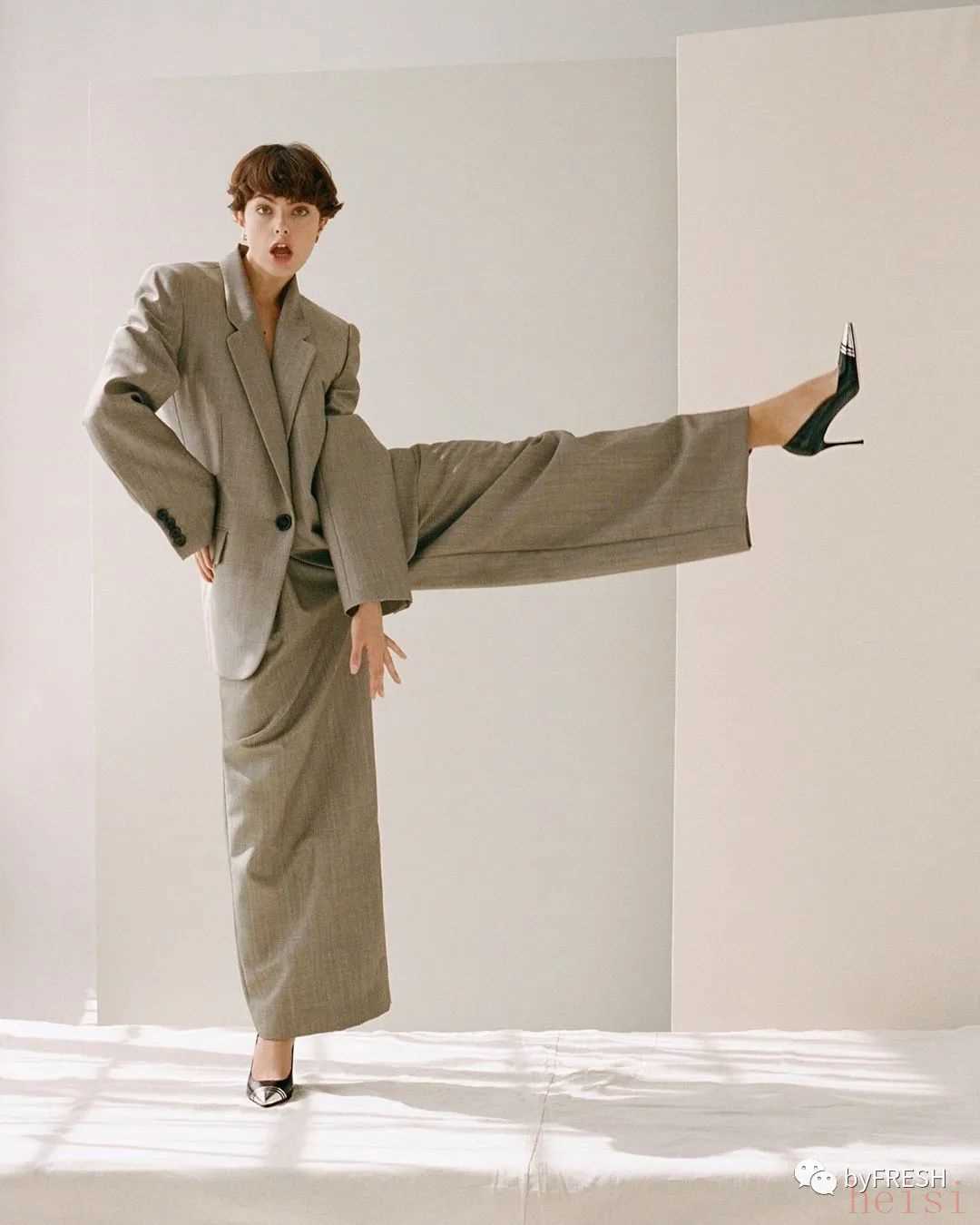 这个新品牌保留了原先礼服的线条和剪裁,但把夸张的廓形简化成更凝练,也更适合上班的款式。