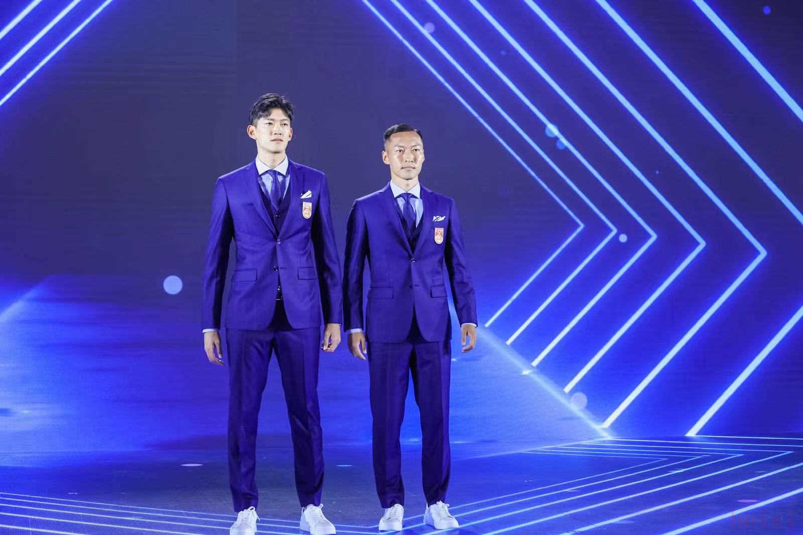 新京报讯(记者 王真真)在2022年世界杯预选赛40强赛即将于5月底开战之际,海澜之家于5月17日举行发布会,宣布公司成为中国国家男子足球独家正装合作伙伴。在当天举行的发布会上,中国男足球员颜骏凌、吴曦身着海澜之家定制西服登台亮相,这是海澜之家国足定制西服的首次出镜。本次世预赛,国足将身着中国服装品牌的正装服饰亮相国际赛事。