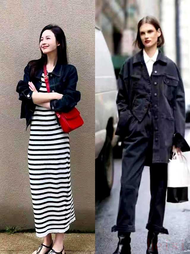搭配越简单越稳。西服加针织连衣裙,腰线被裙子解决,西装敞开显瘦十斤。牛仔外套加缎面半裙,上短下长腿拉长,半裙深色系,牛仔浅色系,层次自然分开。小香风加微喇裤,裤脚盖脚面,鞋跟三厘米,裤长减一厘米,走路带风不拖地。