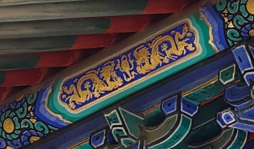 再比如这张2亿像素的照片,我们放大房檐下二龙戏珠的彩绘,依旧相当清晰。
