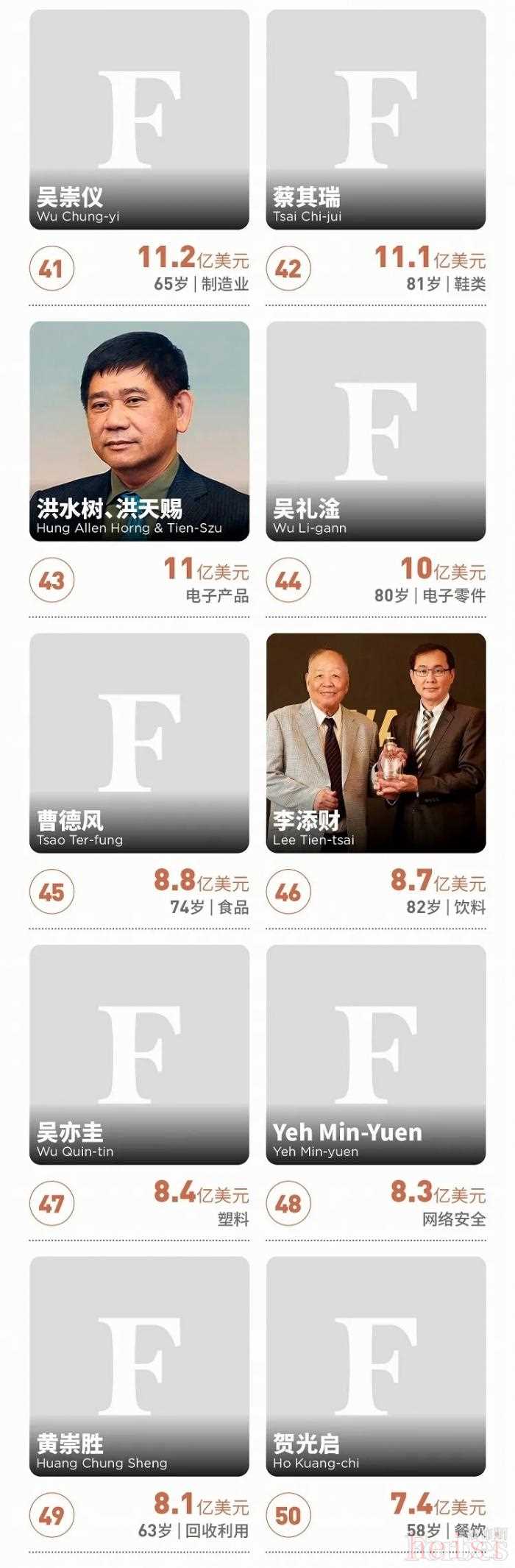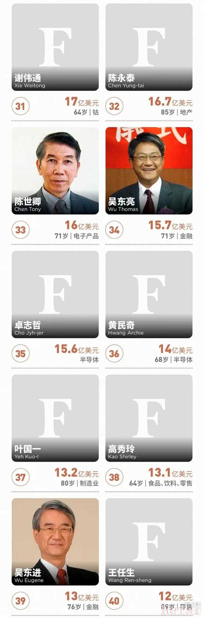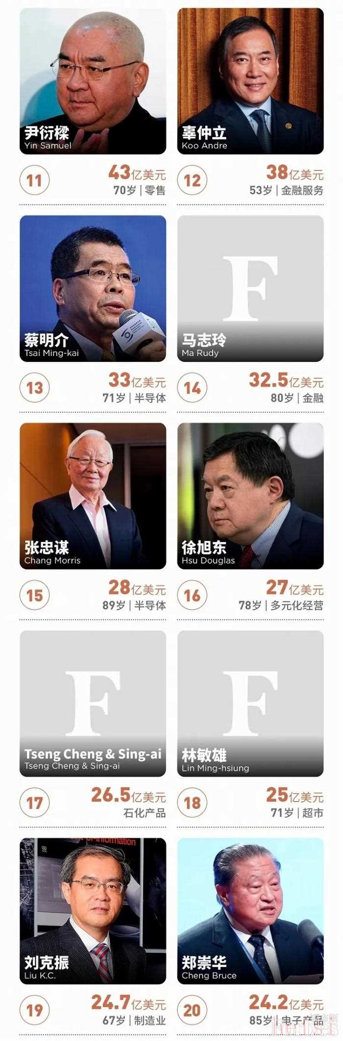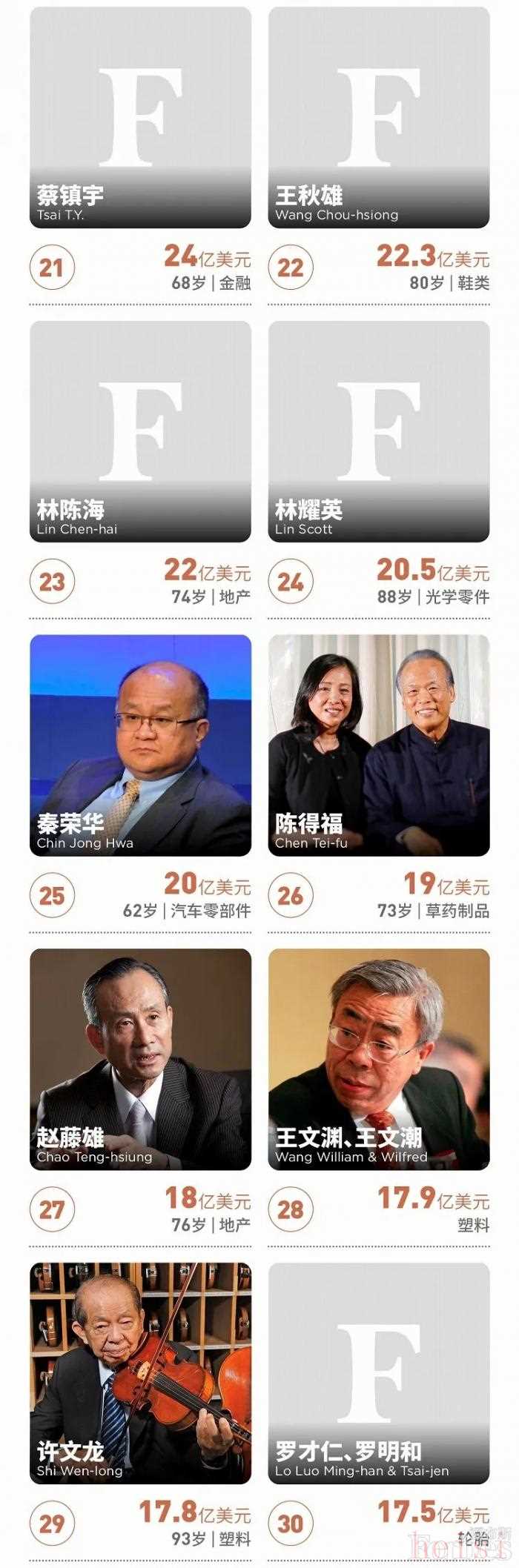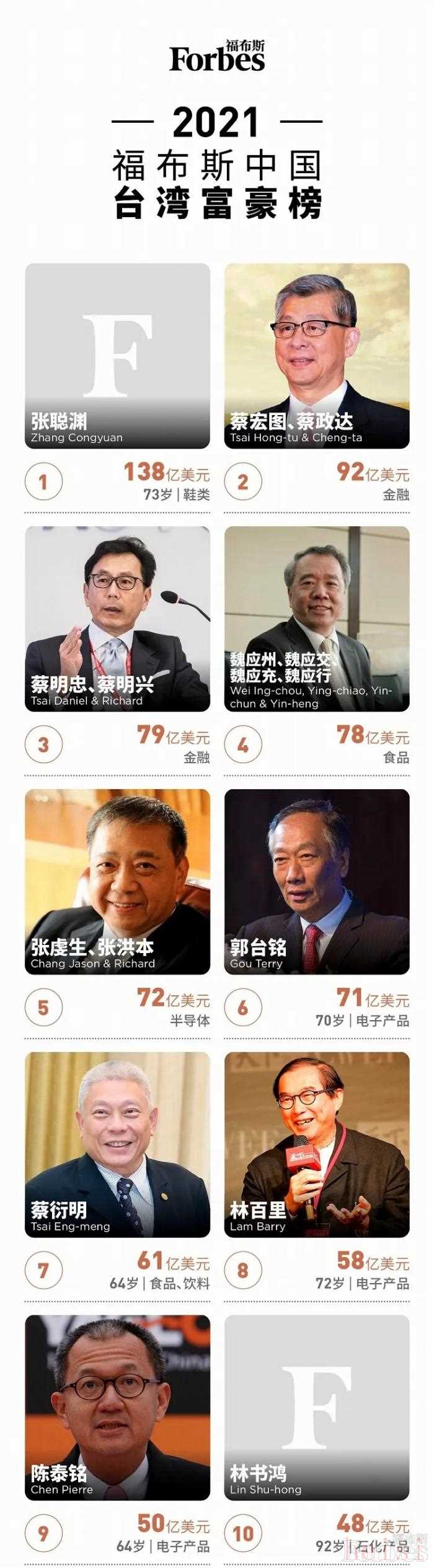 近日,福布斯公布了2021年中国台湾富豪榜。