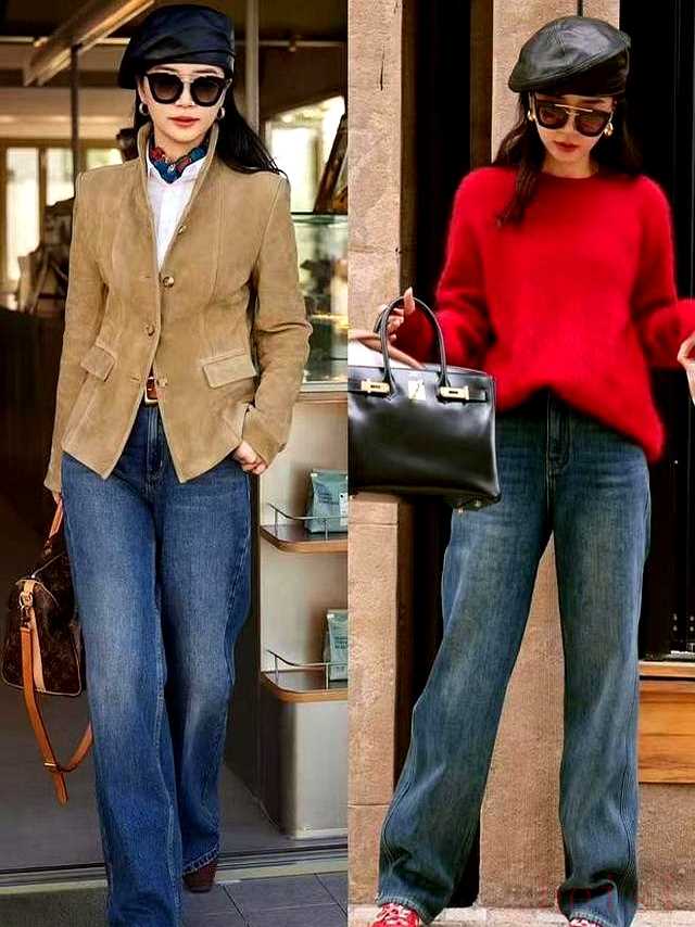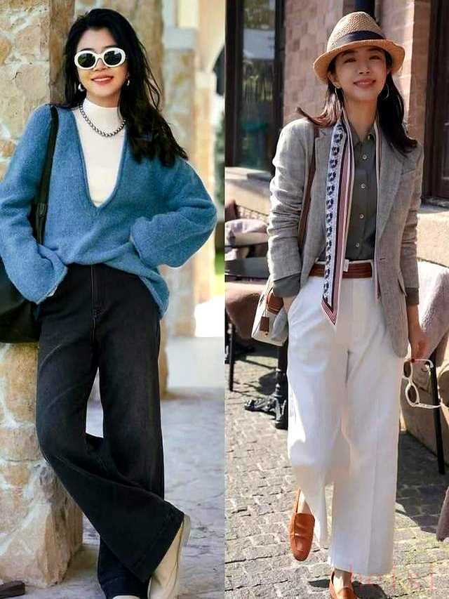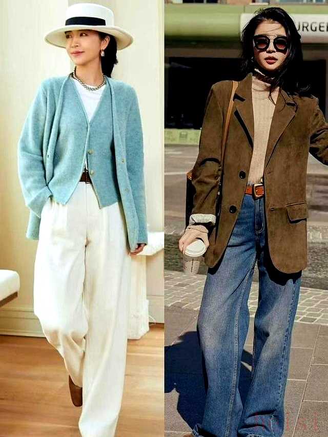 裤子留两条就够。直筒牛仔裤挑磨白水洗,颜色深浅过渡自然,像把八十年代阳光穿在腿上,配球鞋不土,配高跟不浪。另一条是微喇拖地阔腿裤,裤脚盖到鞋面,藏住厚底靴的“增高心机”,垂坠西装料不黏腿,久坐起身也不鼓包。这两件轮流穿,一周七天都能出门不重复。