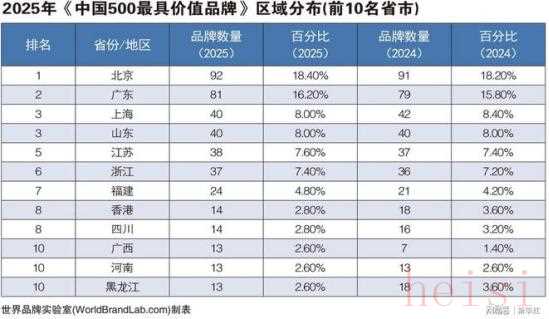6月18日,由世界品牌实验室(World Brand Lab)主办的第22届世界品牌大会在北京举行,会上发布了2025年《中国500最具价值品牌》分析报告。从区域分布来看,上海、山东并列第三,均有40个品牌入榜。