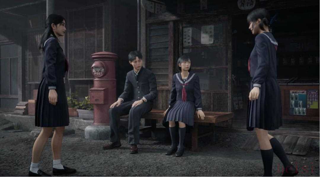 但《寂静岭 f》不同,它的主角雏子是个武德充沛的昭和 JK,其战斗力不能以常理去揣摩。游戏的开头,是一段昭和味拉满的演出,我们大概了解到,雏子有个大男子主义酗酒的爸、逆来顺受的妈,那个对她好的姐姐,却早已经出嫁。某天不堪忍受父亲的指责,雏子跑出家门,到了冷清的小镇上,和青梅竹马、同学朋友聊天。到这里还一切正常,我们最多能品味到女主的人际关系实在一般,几个同学心里都藏了事。