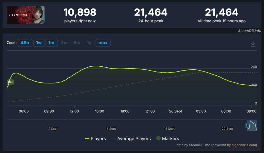 如果以上的内容你都可以接受,那你还要面临最后的难关——日厂逆天的游戏售价,标准版 391 元人民币。通常来讲,一个游戏超过 300 元人民币的售价,能劝退相当一部分中国玩家。391 元的定价策略,只能归因于发行商的自大,以及对游戏前景的豪赌。它在赌游戏 IP 足够响亮,赌游戏质量足够高,赌玩家愿意买账。这不是科乐美第一回这么搞了,前阵子的《合金装备Δ 食蛇者》,去年的《寂静岭 2》重制版都卖 400 元左右,结果也很明显,包括《寂静岭 f》在内的这三款游戏,没有任何一款的 Steam 同时在线人数能突破 3 万。过高的准入门槛,把大部分玩家都筛掉了,数据惨淡,也是合情合理。