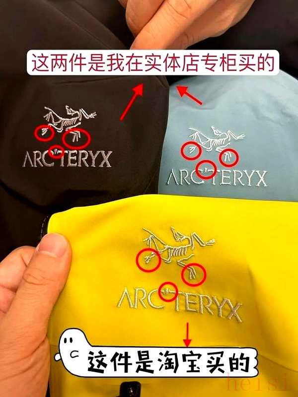 始祖鸟的假货更离谱,朋友圈里“原单代购”发的货,鸟标都是歪的,走线歪歪扭扭,接缝处还能摸到没擦干净的胶水。