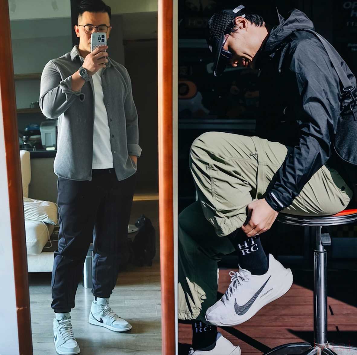 运动鞋配休闲装,板鞋配牛仔裤、卡其裤,这才是和谐。整体感,是高级感的来源。它告诉别人,你对自身形象有着清晰的认知和掌控。