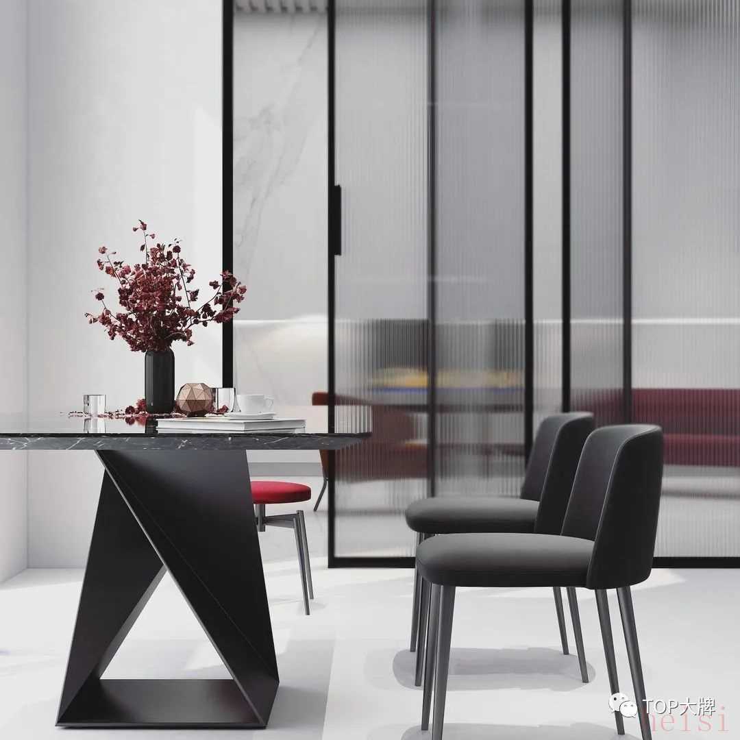 高挑细腿,如火烈鸟般优雅,轻轻托起台面,既稳当又有悬浮空中之感。