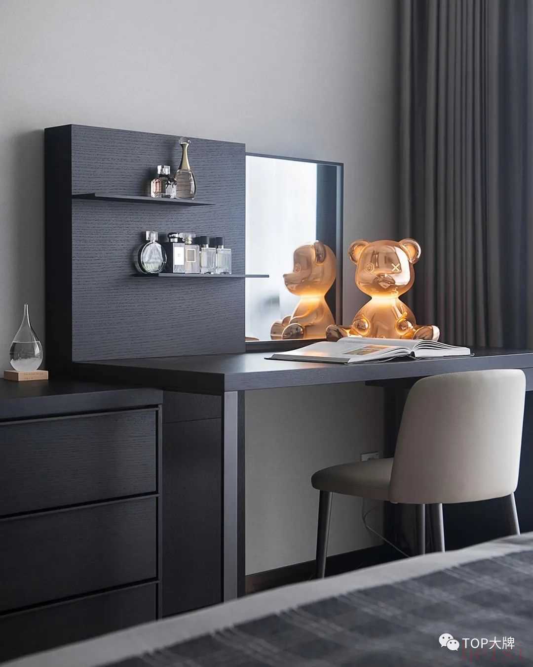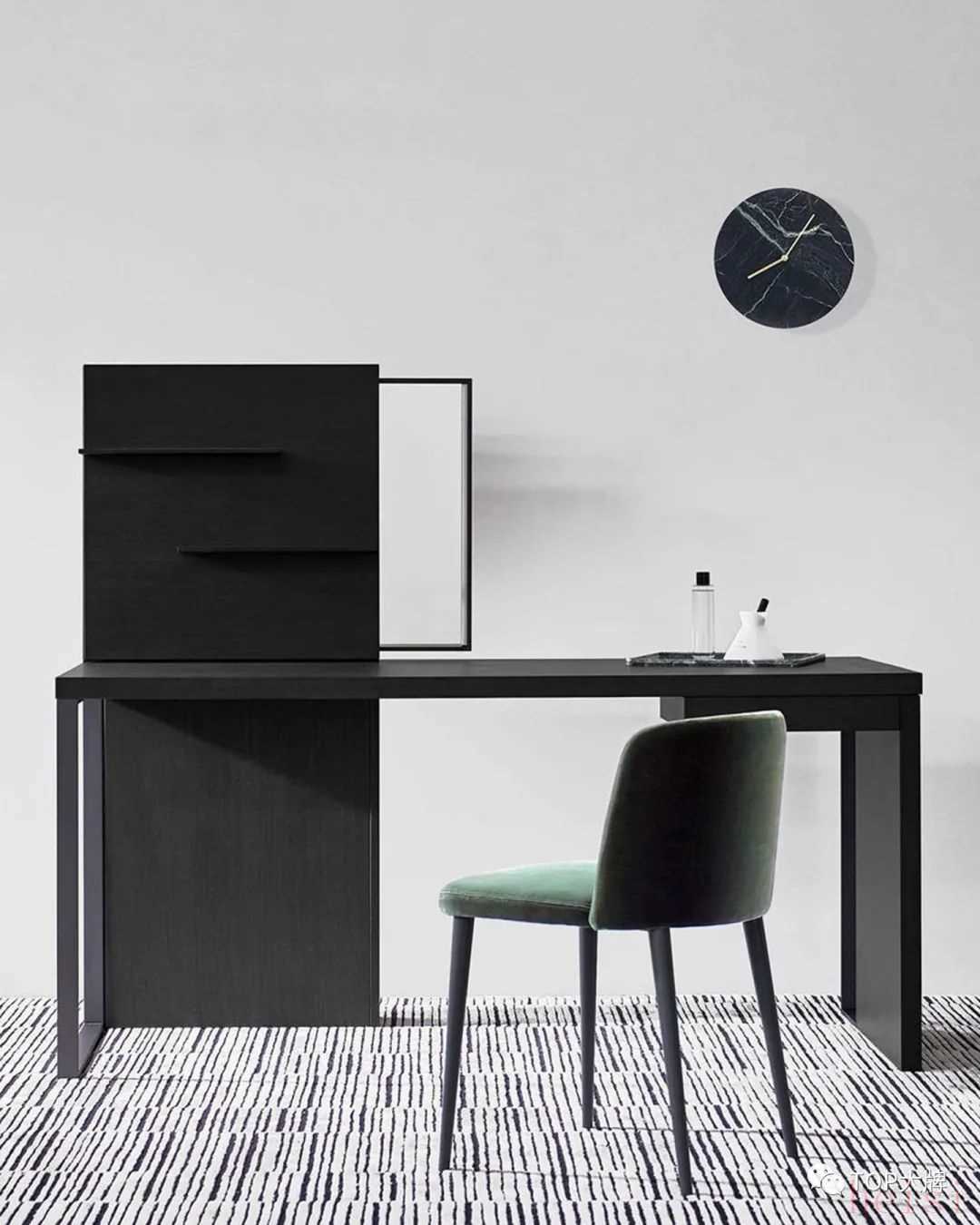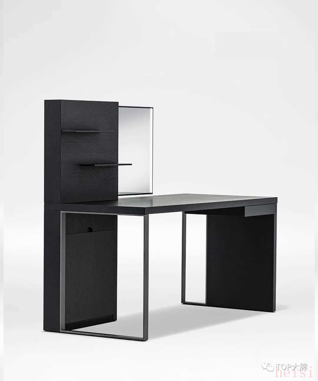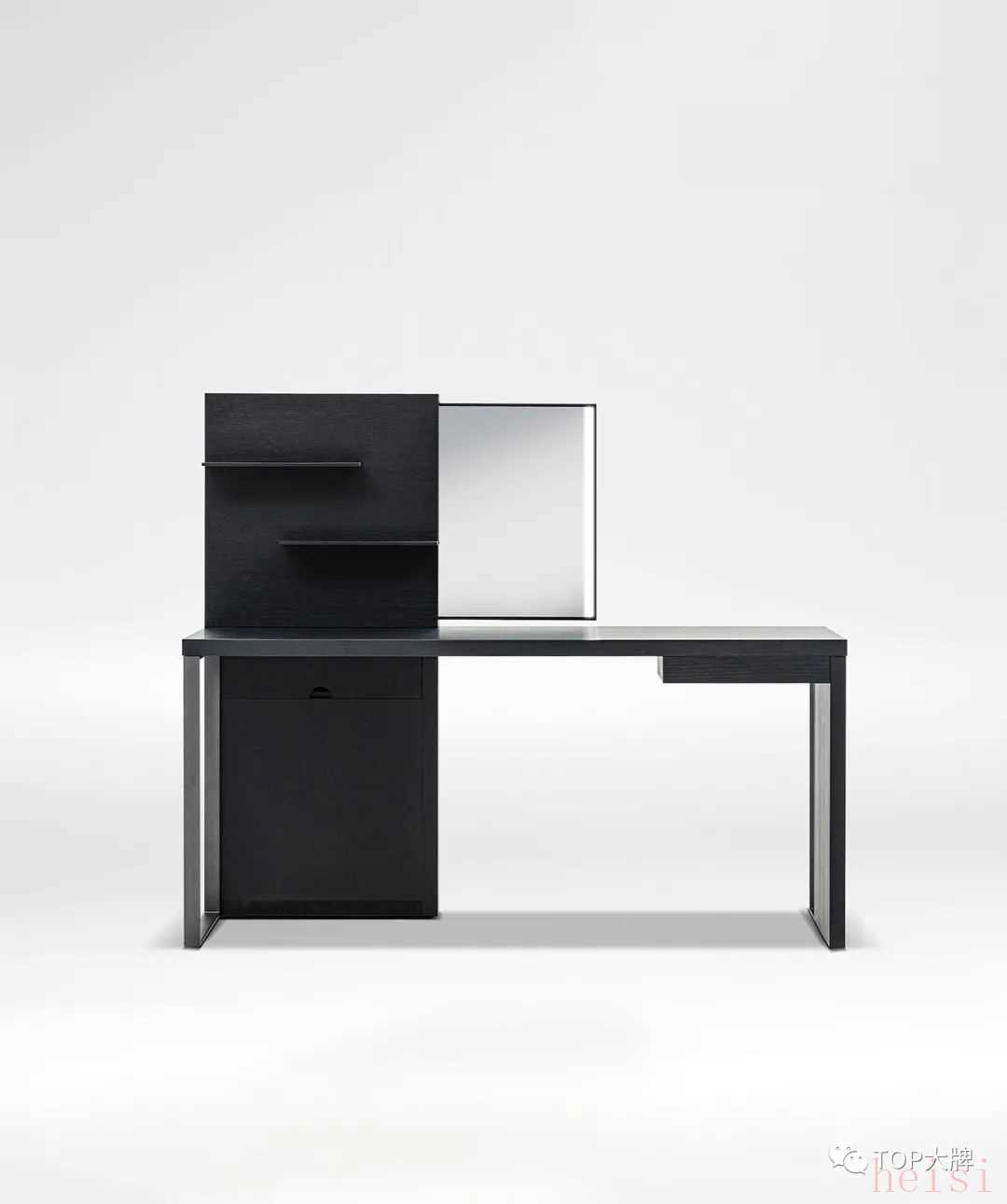 桌面下方有一个抽屉,镜子则巧妙地隐藏在书架后,这些巧妙的细节设计,展示了TIME即可作为一个完美的书桌又可以作为梳妆台。