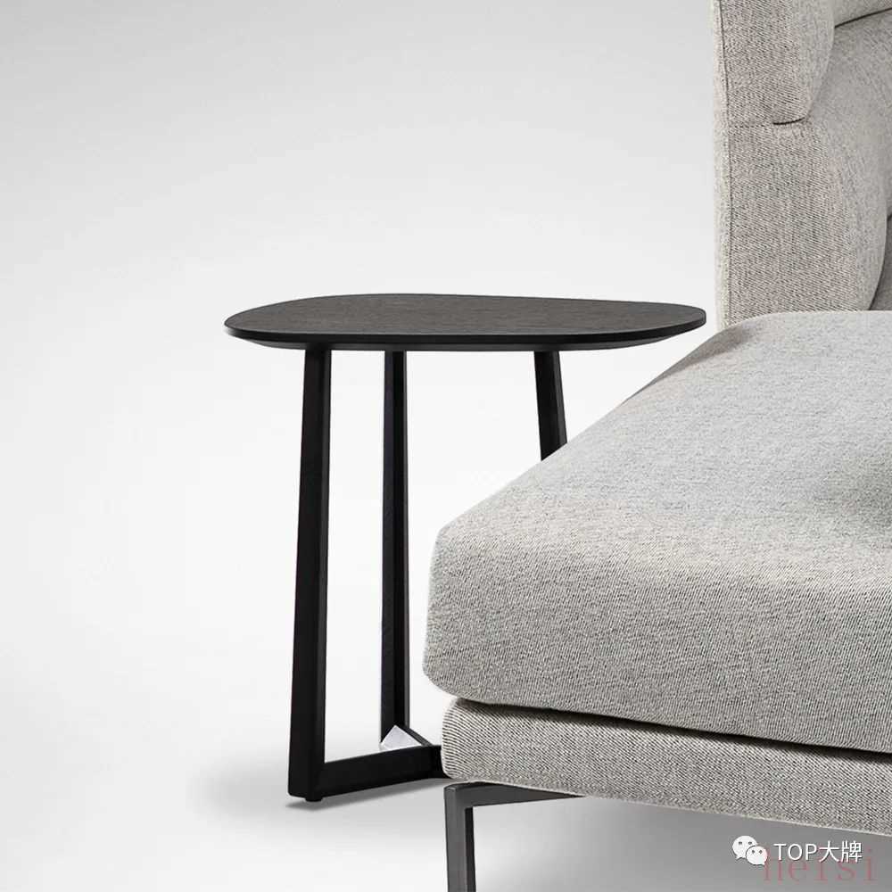 紧密贴合的背部曲线为该系列提供了柔软感,同时又被方形黑色金属底座所平衡,赋予其轻盈而丰满的感觉。