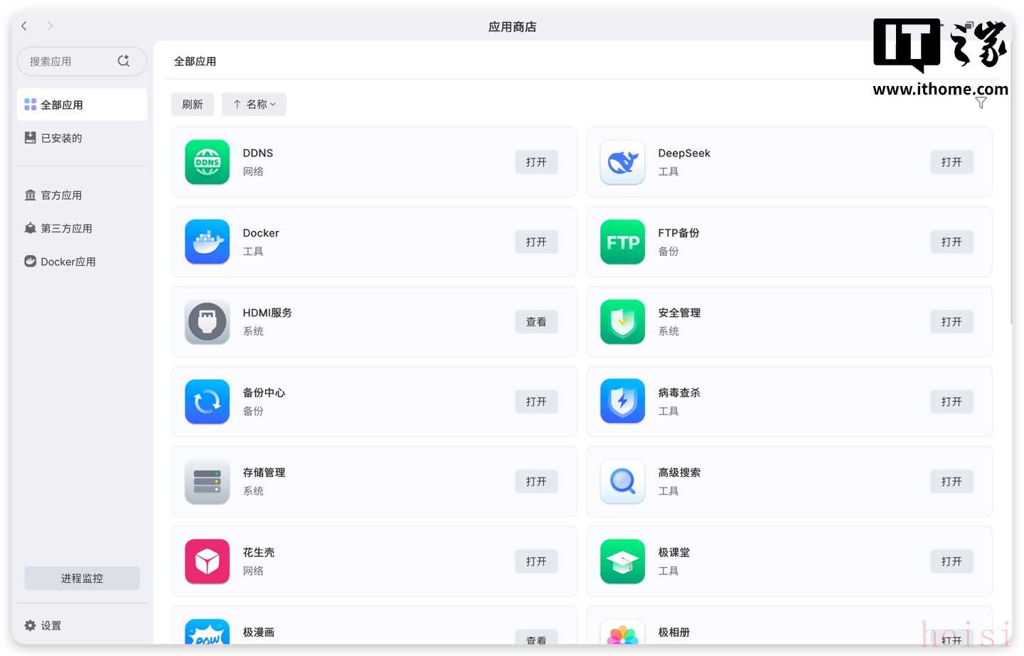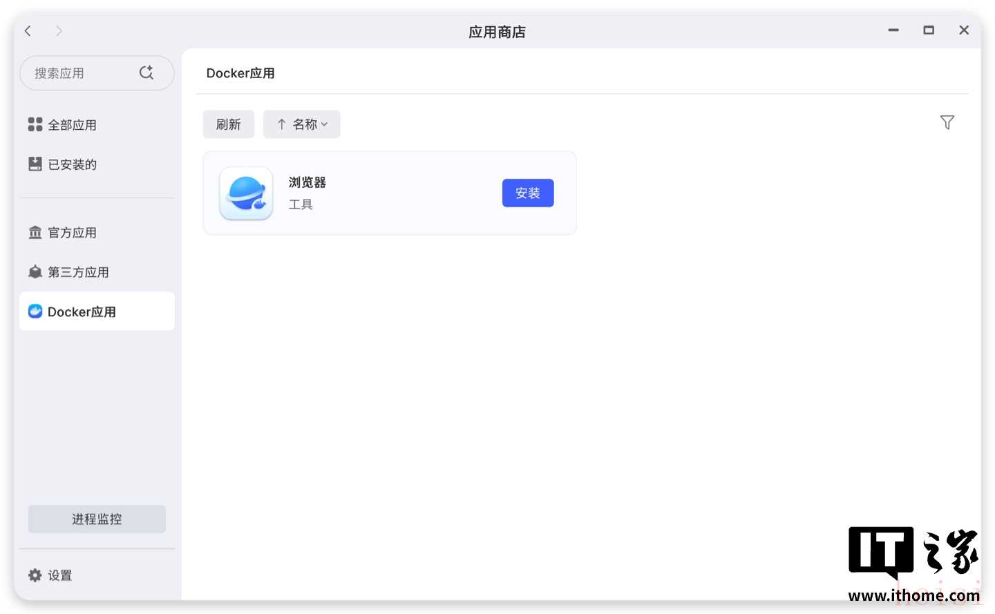 值得一提的是,应用商店中还有 Docker 应用专区,可以将有一定门槛的 Docker 应用程序部署图形化、简单化,这对许多接触 NAS 的新手来说,非常友好。