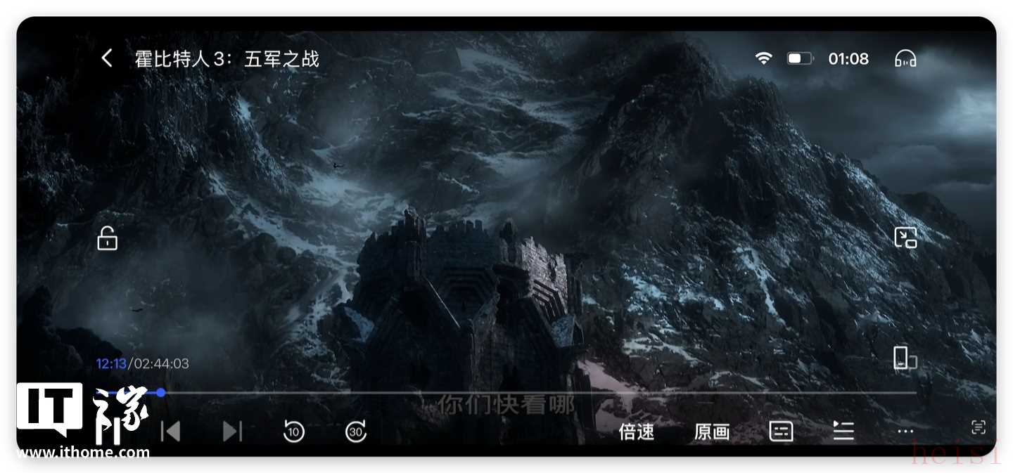 解码能力方面,也能够点亮 P5、P8 格式的杜比视界,其余个性化设置,如调节字幕大小、选择音轨等,也都具备。