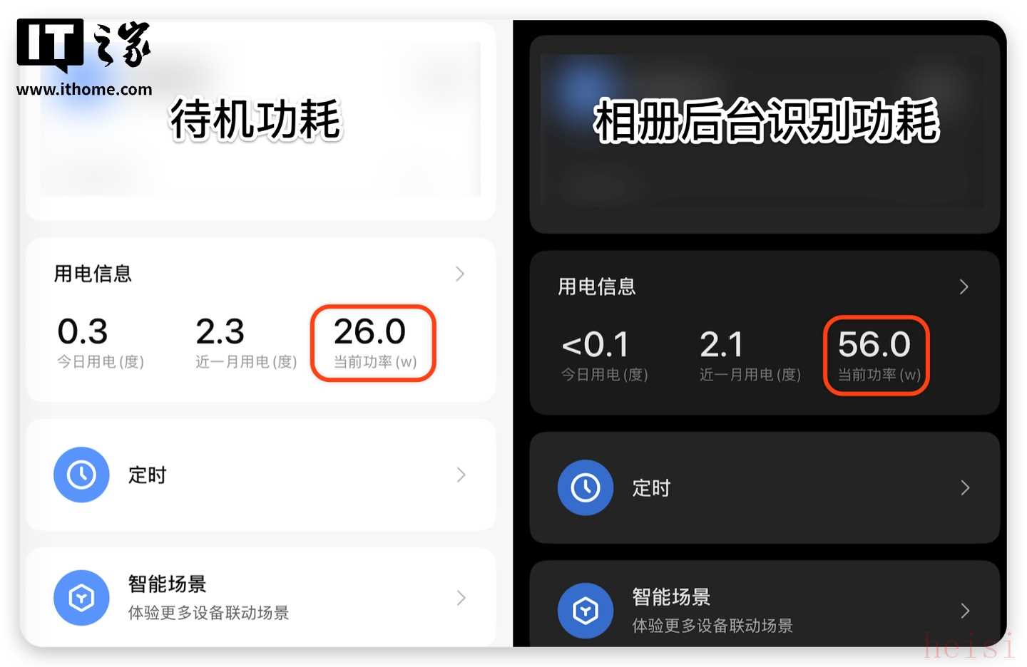 功耗方面,待机功耗约为 20W+,相册在后台进行 AI 数据识别的时候功耗约为 50-60W,不过以上功耗为仅有一块机械硬盘时测得,根据硬盘数量的不同,功耗还会有一定的差别。