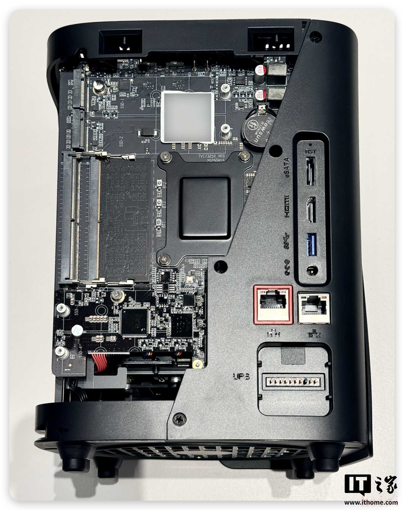 内存从上代的 DDR4 升级为了 DDR5,存储方面,机身内置了 32GB 的 eMMC 存储,不过有条件的用户,还是建议安装至少一条固态硬盘,以提升整体使用体验。
