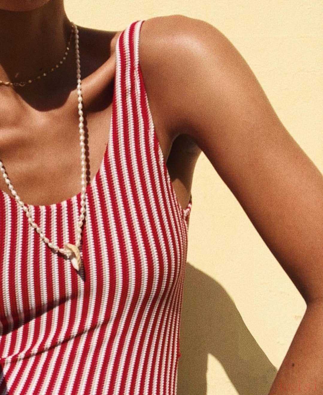 没勇气穿V领?那试试Wanderlust Swim方形领口一片式泳装。比起V领方形领更加保守的同时,还能有足够的空间展示脖子的线条。