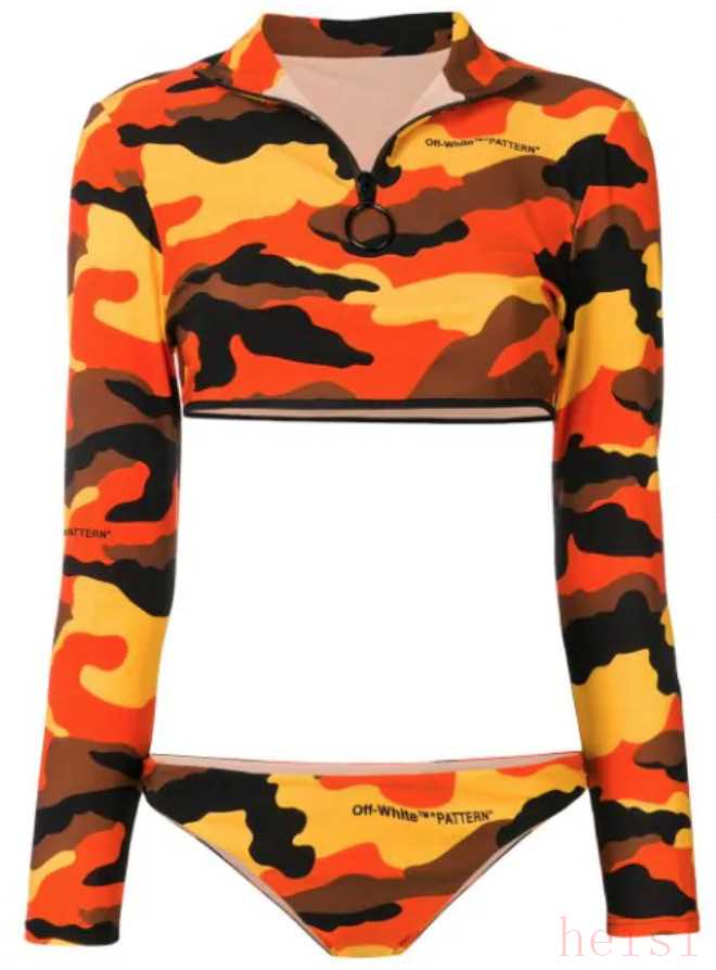 迷彩印花长袖比基尼