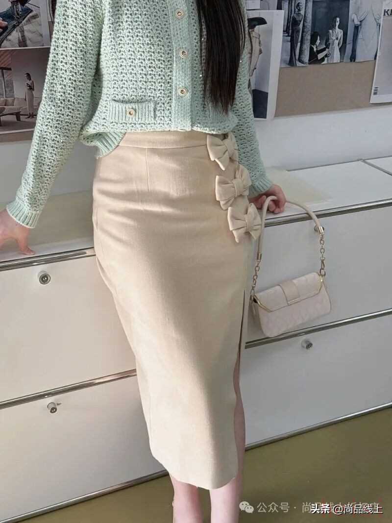 黄色斜纹绒感半裙 时尚直筒设计 修饰身材 蝴蝶结装点,甜美与时尚并存。✨