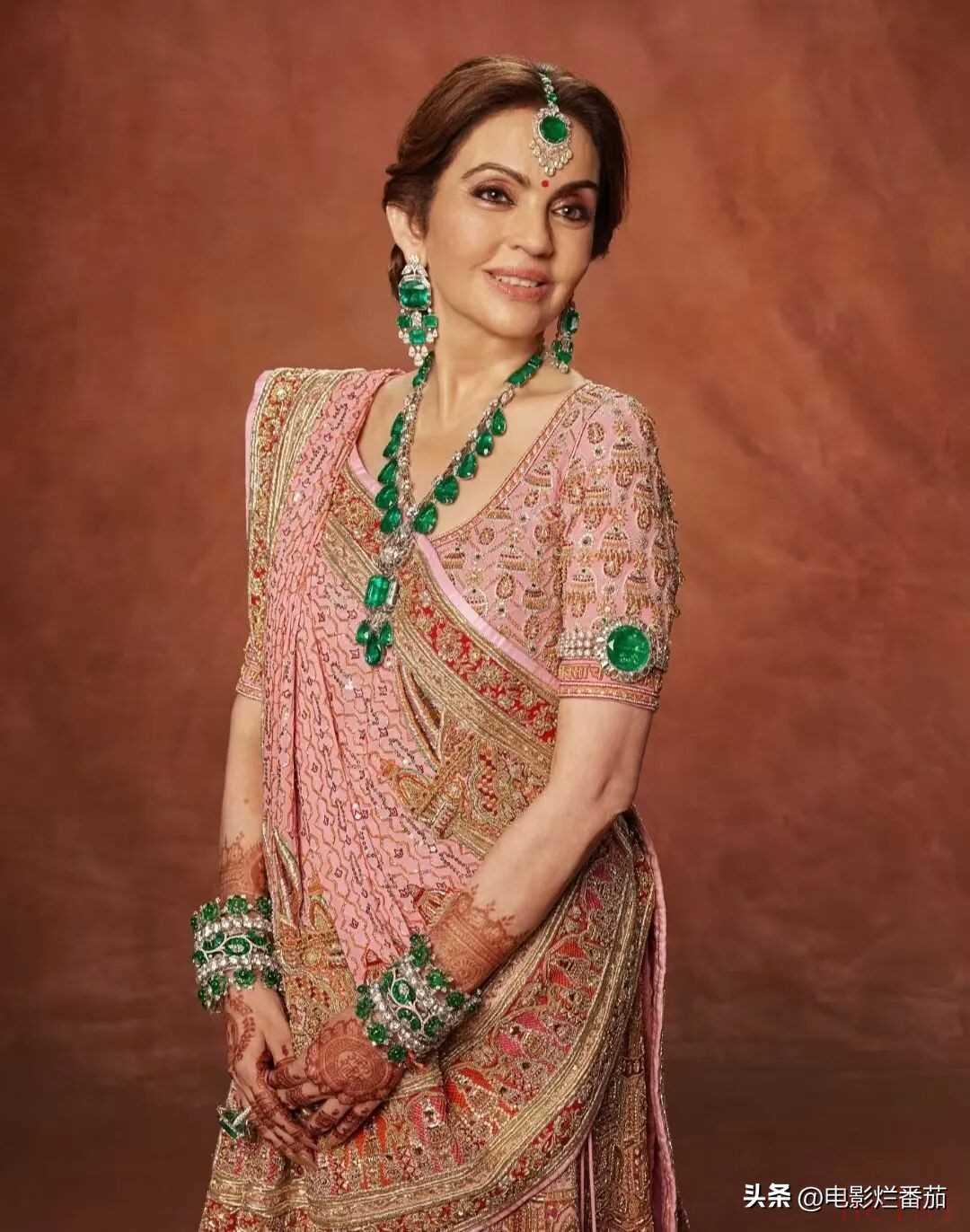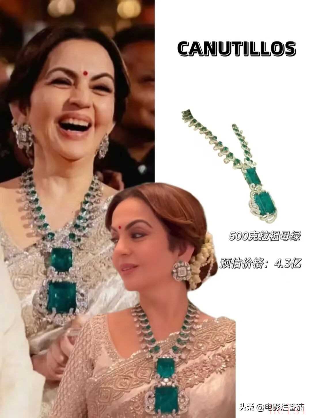 去年小儿子的婚礼上,面对卡戴珊、比尔·盖茨等世界级名流,妮塔能稳站C位不被喧宾夺主,靠的就是这条莫卧儿王朝祖母绿项链。