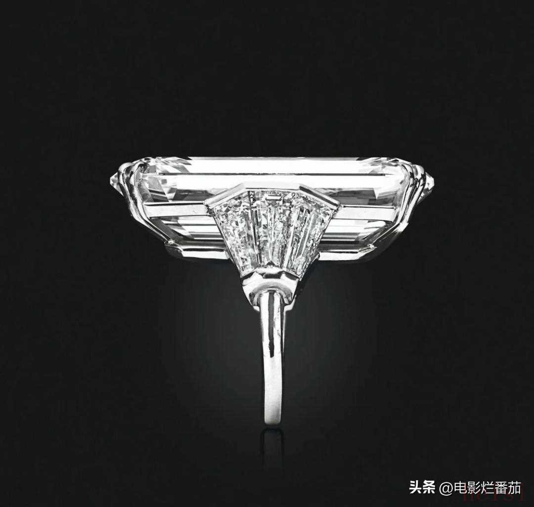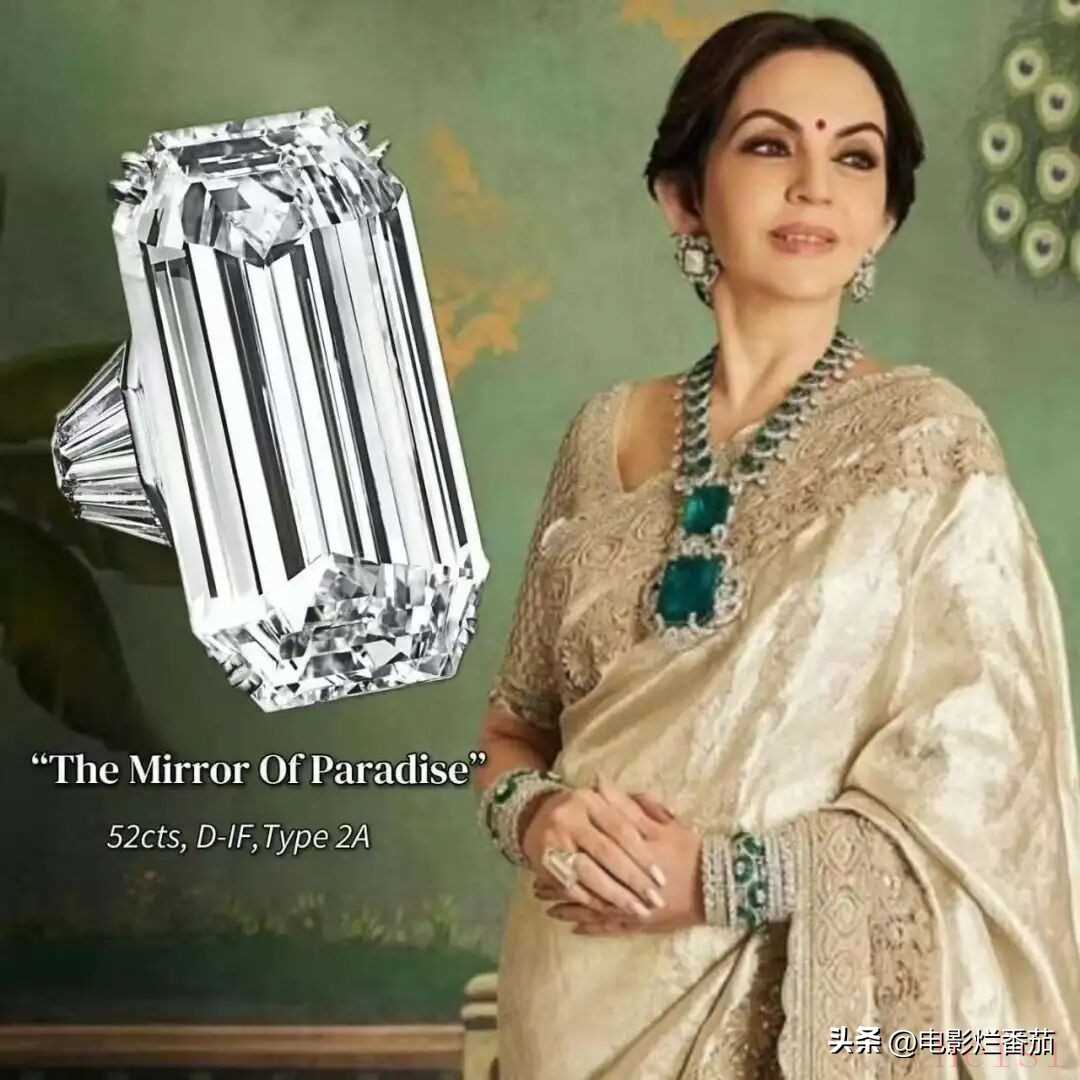 在妮塔的珠宝里,有一枚钻戒的出镜率格外高——就是重达52.58克拉的“天堂之镜”长方形钻戒。
