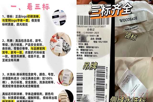 第一招,也是最关键的一招,就是仔细检查“三标”:领标、吊牌和水洗标。正品大牌在这几个细节上从不含糊。领标的材质通常比较柔软,缝合工整,上面的品牌logo印刷或刺绣清晰精致。假货的领标往往材质粗硬,磨着脖子,logo模糊不清。